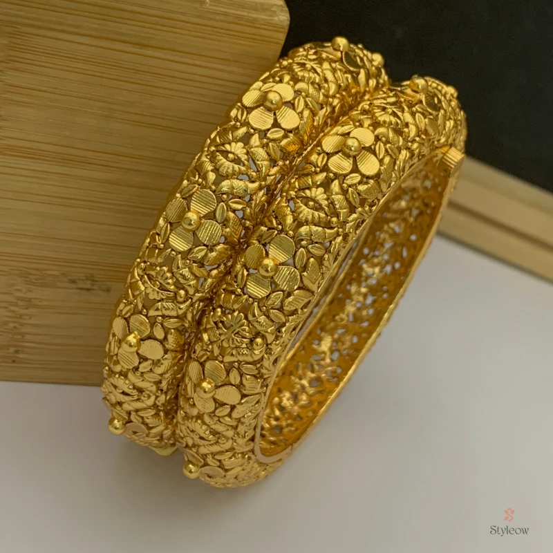 বালার পাশের দিকে এবং ভেতরের edge-এ রয়েছে open filigree কাজ — ফাঁকা ফাঁকা জালির মতো গঠন যা বালাটিকে দেখতে অনেক বেশি intricate ও handcrafted করে তোলে। এই openwork অংশটি দেখা যায় বালার ভেতর থেকে, যা এটিকে একটি 360-degree সুন্দর গহনায় পরিণত করেছে।